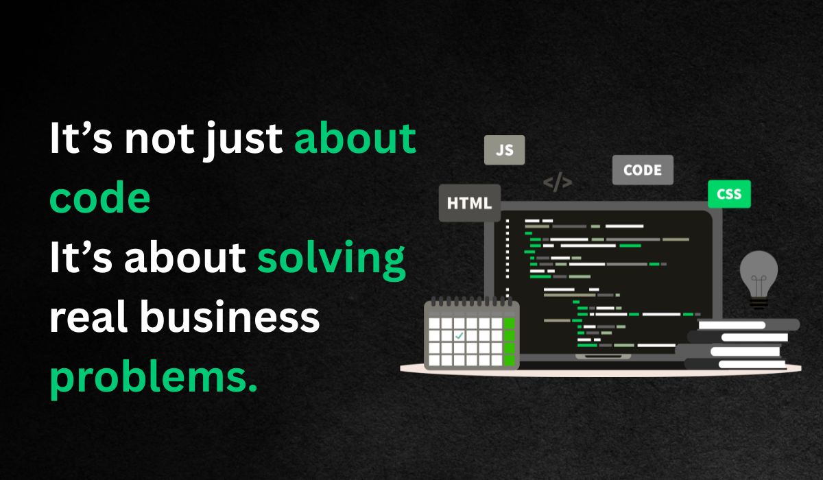 🔹 It’s not just about 𝘄𝗿𝗶𝘁𝗶𝗻𝗴 𝗰𝗼𝗱𝗲, it’s about 𝘀𝗼𝗹𝘃𝗶𝗻𝗴 𝗿𝗲𝗮𝗹 𝗯𝘂𝘀𝗶𝗻𝗲𝘀𝘀 𝗽𝗿𝗼𝗯𝗹𝗲𝗺𝘀.